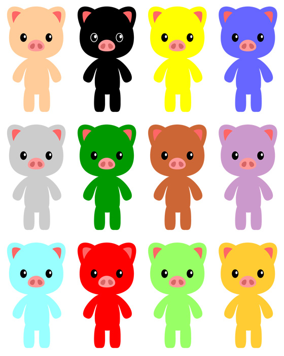 "【F2-048】カラフルピッグフリーキャラクター" |